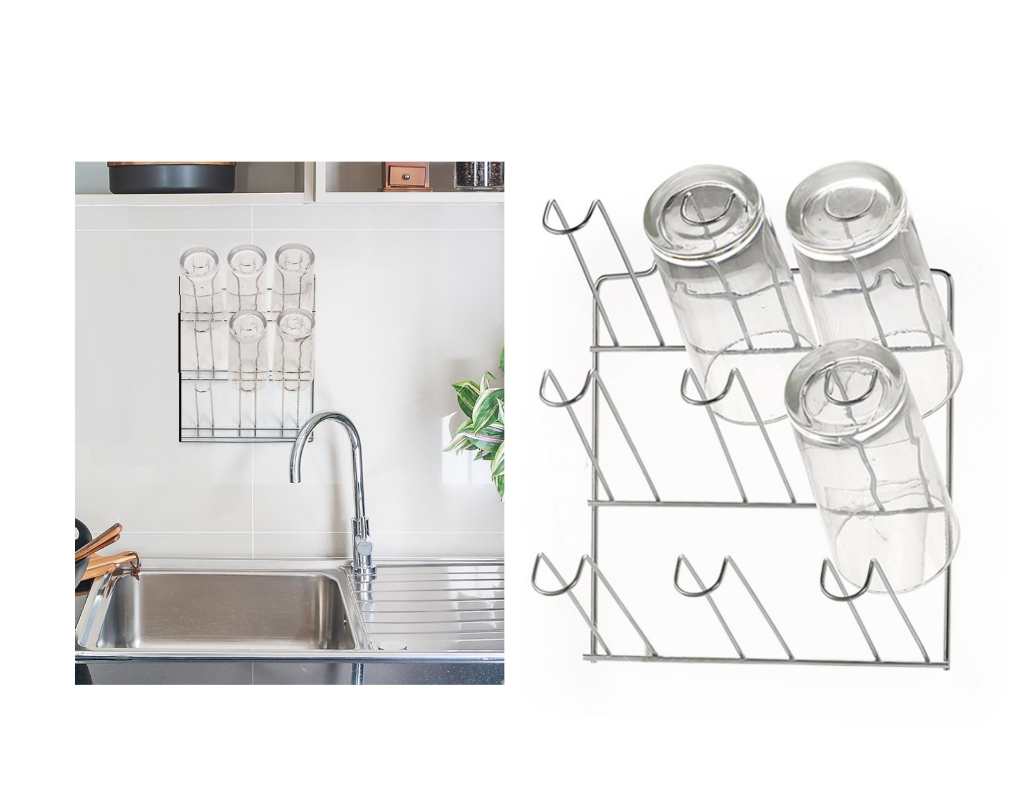 Duvar Bardaklık , pratik ve dayanıklıdır, 9 bardağa kadar kapasitelidir.Tamamı krom çelikten yapılmıştır, bardakları kurutmak için idealdir.19x12x24cm ebatlarındadır.