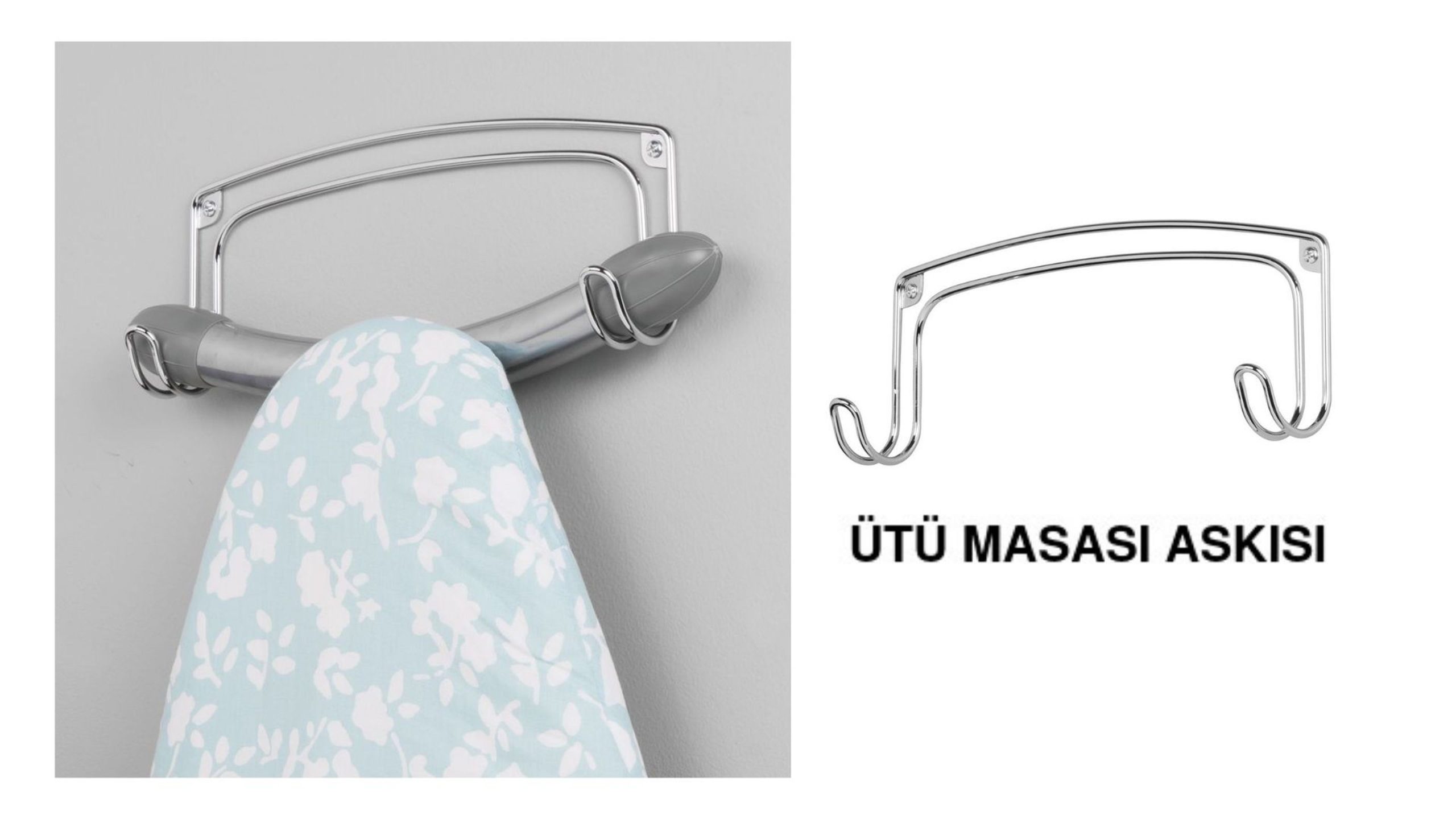 | Ütü masanızı sabitlemenize yardımcı duvara monte edilebilen çelik bir üründür.Ütü masanızın odanızda yer kaplamasını önlersiniz.Görseldeki aksesuarlar ürüne dahil değildir. |