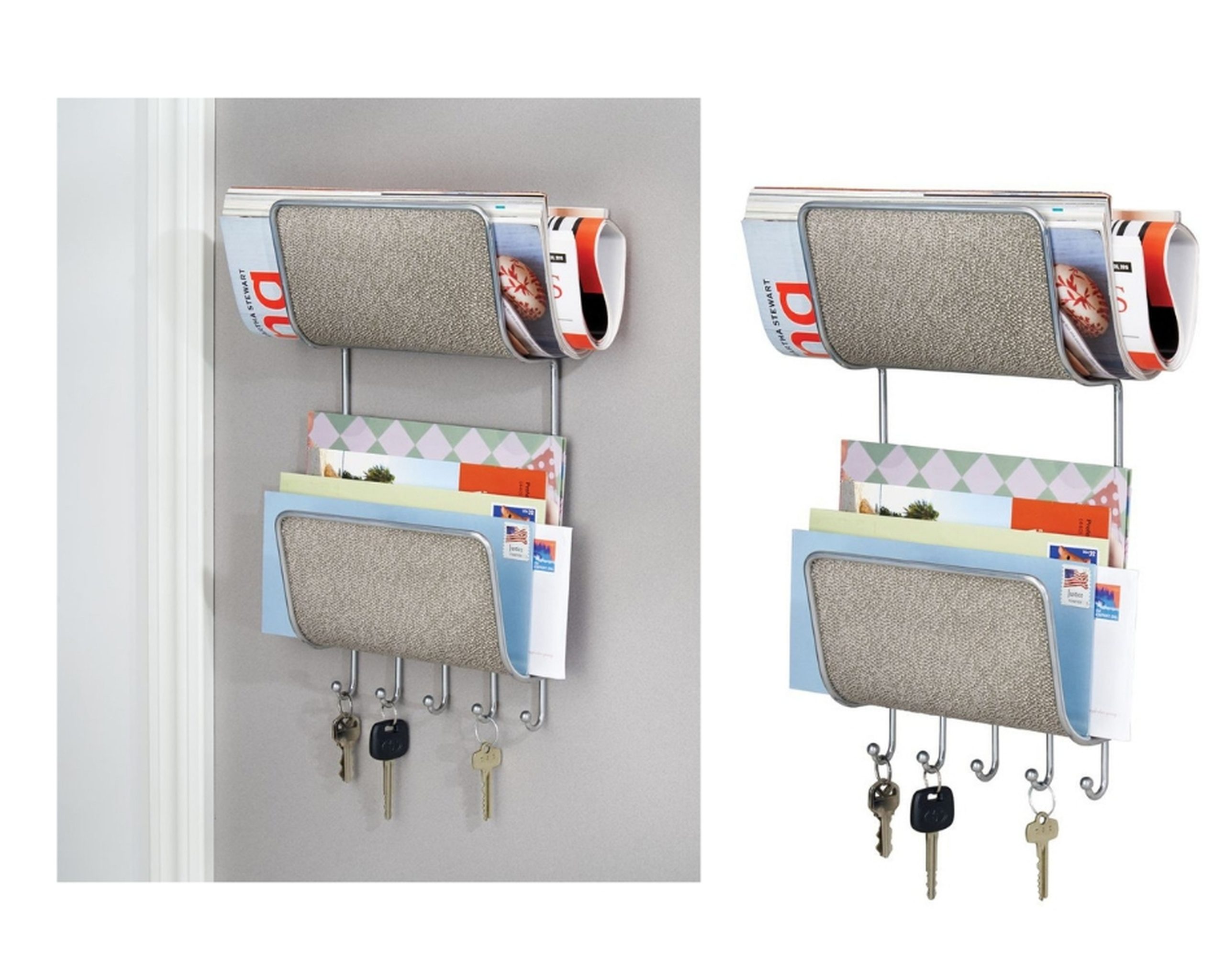 | Gazete ve mektuplarınızı koyup,anahtarlarınız ve çeşitli malzemelerinizi asabilirsiniz.2 Katlıdır.Paslanmaz çelik olan ürün metalik gri renklidir.Boyu 36,8cm,eni 19cm,içe kalınlığı 8,8cm,dir. |