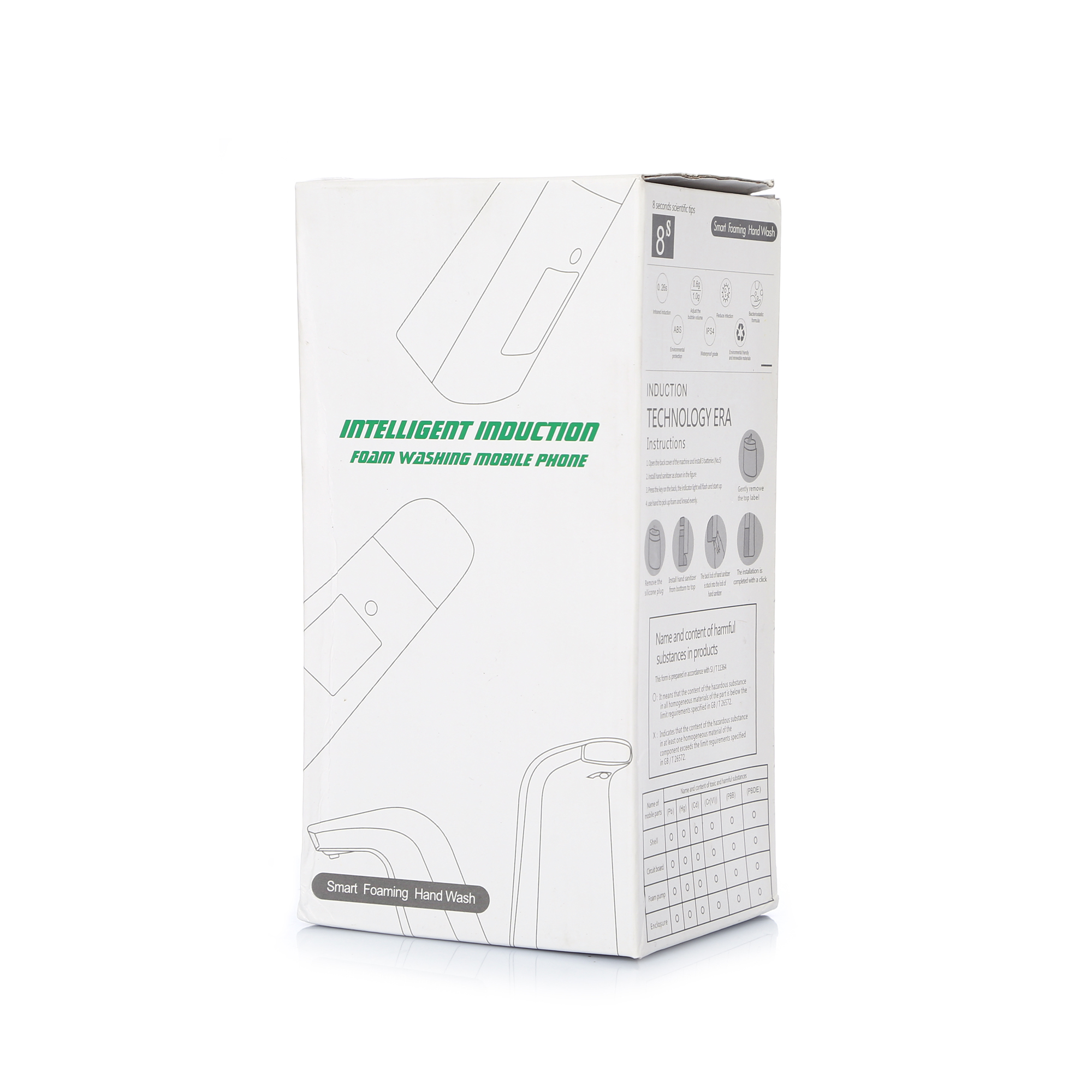 | 250ml sensor sıvı sabunluk kopuk verici pil ile çalısır.3.7~4.5V ABS 226g 4-5cm uzaktan etileşimi mevcuttur.Sıvı sabunu koyunca az sabunun 1/3 u kadar su hazneye eklersenız dırek sıvı sabunluk kopugu verir. Modern tasarımlı ABS urundur.Piller ürüne dahil değildir. |