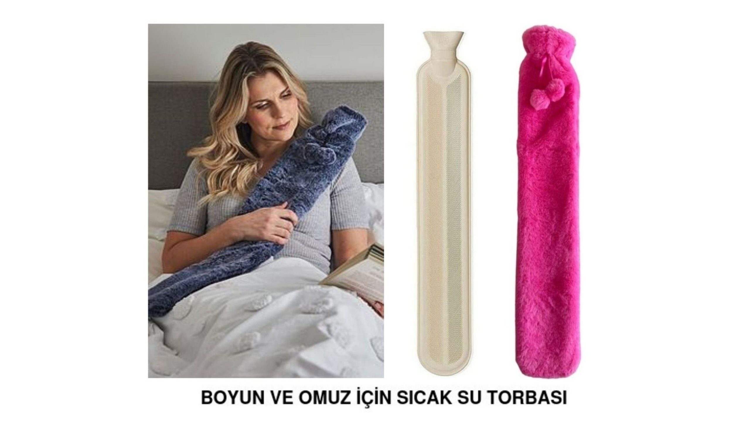 | İçinde kauçuktan yapılmış sıcak su torbasıdır,dışı daha sıcak tutması için peluş yünlü bir kılfla kaplıdır.Pembe renklidir.2 Litre kadar su alır.Boyu 75cm,eni 13cm,dir. |